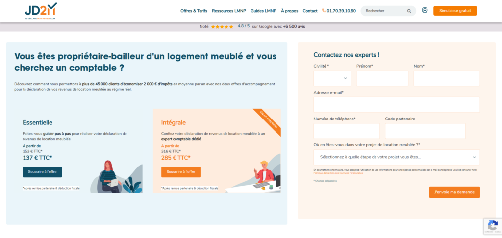 Pour être accompagné dans la réalisation de vos déclarations LMNP, il faut compter au minimum 250€. Comme l’offre Intégrale de JD2M à 316 € TTC ou l’offre Expert d’Amarris Immo à 222 € TTC, après déduction fiscale.