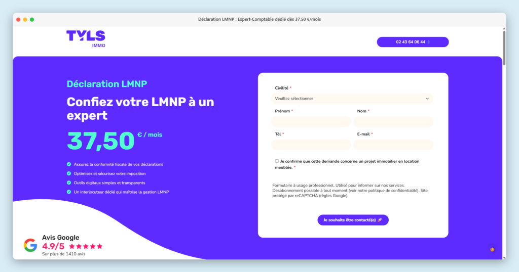 Tyls Conseil est un cabinet d’experts-comptables spécialistes des LMNP. Ils proposent une offre sur-mesure avec un accompagnement personnalisé pour réaliser votre déclaration LMNP, recevoir des conseils d’optimisation et assurer la conformité de vos obligations comptables et fiscales.