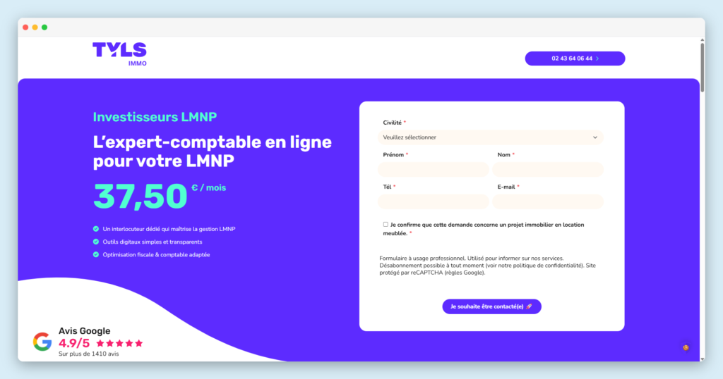 Tyls Conseil est un cabinet d’experts-comptables spécialistes des LMNP. Ils proposent une offre sur-mesure avec un accompagnement personnalisé pour réaliser votre déclaration LMNP, recevoir des conseils d’optimisation et assurer la conformité de vos obligations comptables et fiscales.